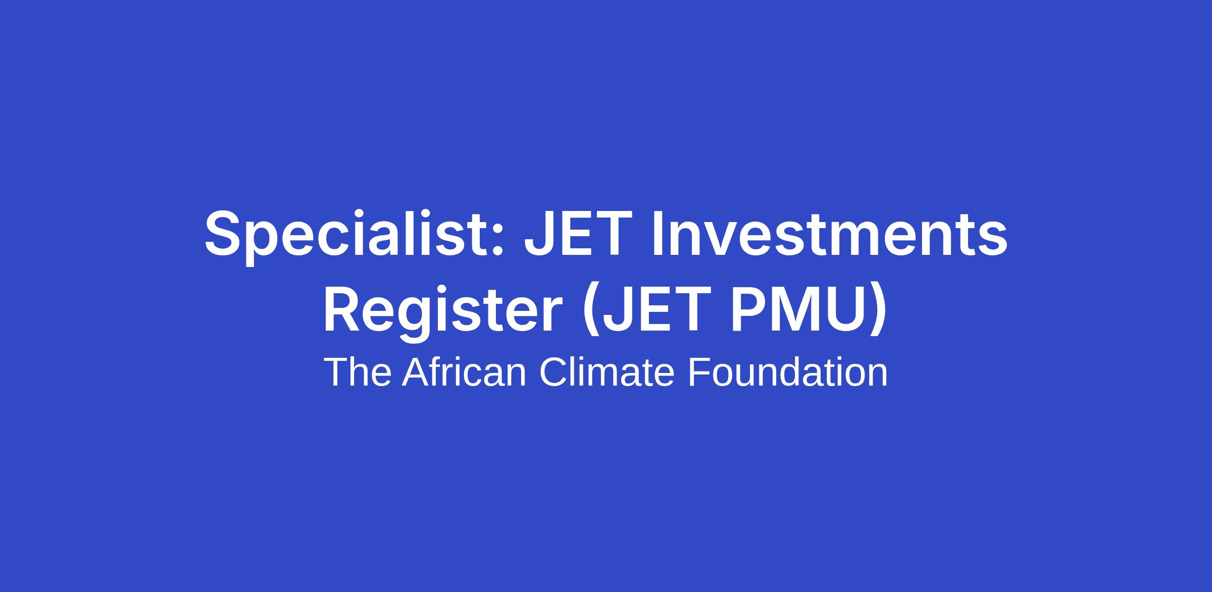 As part of the MOU signed between the African Climate Foundation (ACF) and the Just Energy Transition Projects Management Unit (JET PMU); the ACF agreed to provide resources to the JET PMU to enable the JET PMU to fulfil its mandate pursuant to the JET PMU’s terms of reference. This includes the secondment of technical experts across all relevant disciplines to support the agenda of the JET PMU.