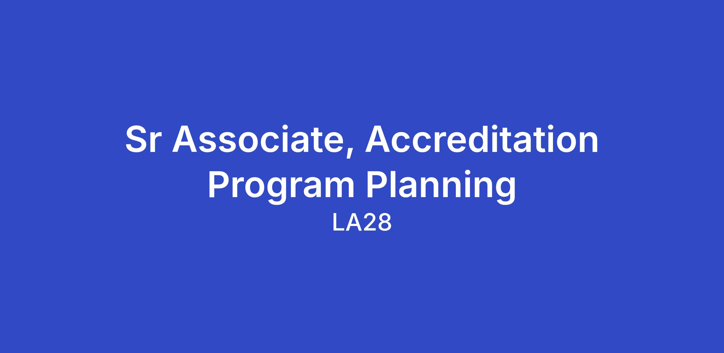 Sr Associate, Accreditation Program Planning