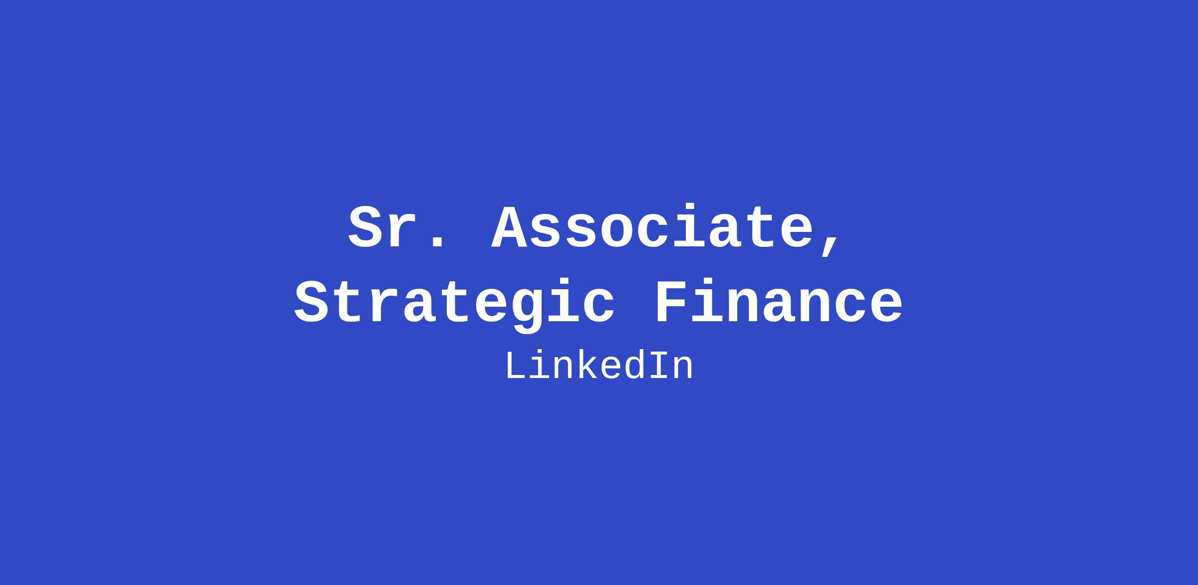 Our Monetization Strategic Finance team is searching for a strategic and results-driven Senior Associate of Strategic Finance, Marketplace Performance for LinkedIn Sales Solutions (LSS). This person will partner closely with senior R&D leaders to craft our long-term term strategy, drive focus efforts on top priorities and shape the future growth of LSS. A strong candidate will be able to demonstrate a track record of strategic insight, analytical rigor, and synthesized communication.