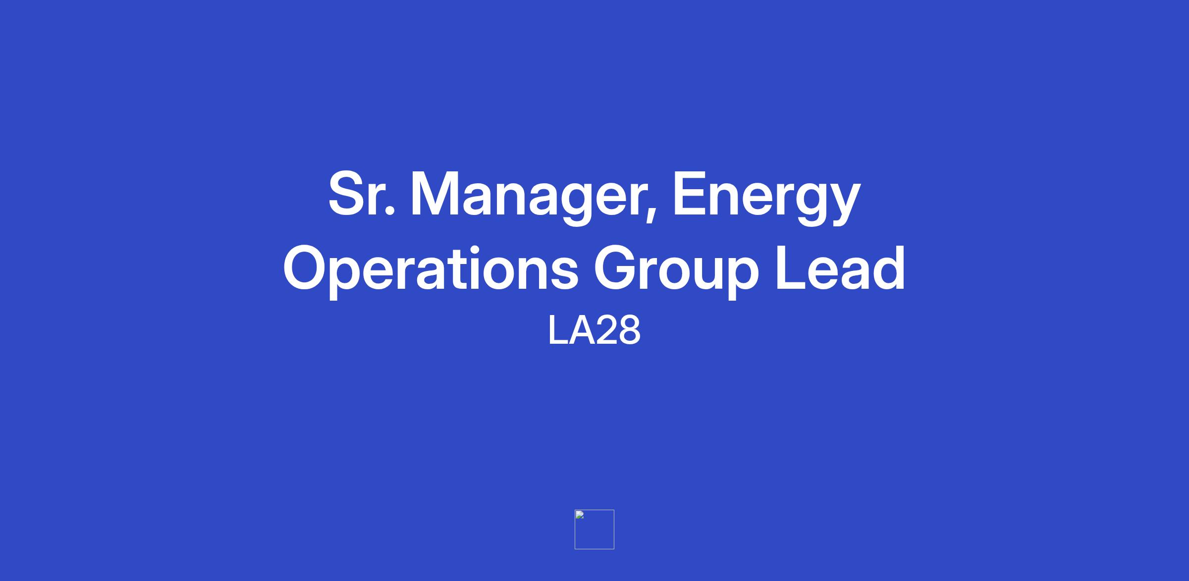 Sr. Manager, Energy Operations Group Lead