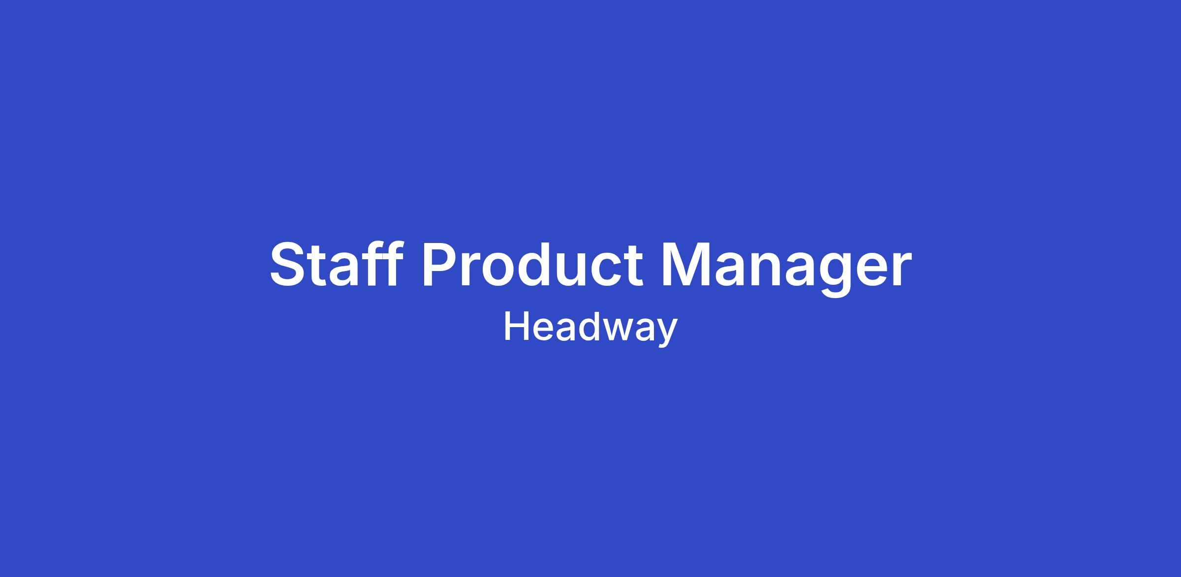 We are hiring across Patient, Provider, Payer, and Platform. The right candidates will bring strong product fundamentals and a willingness to build with AI in a regulated, high-stakes industry.  Staff PMs at Headway own product areas end-to-end: setting strategy, partnering deeply with engineering, data science, and design, and driving outcomes that move the company.