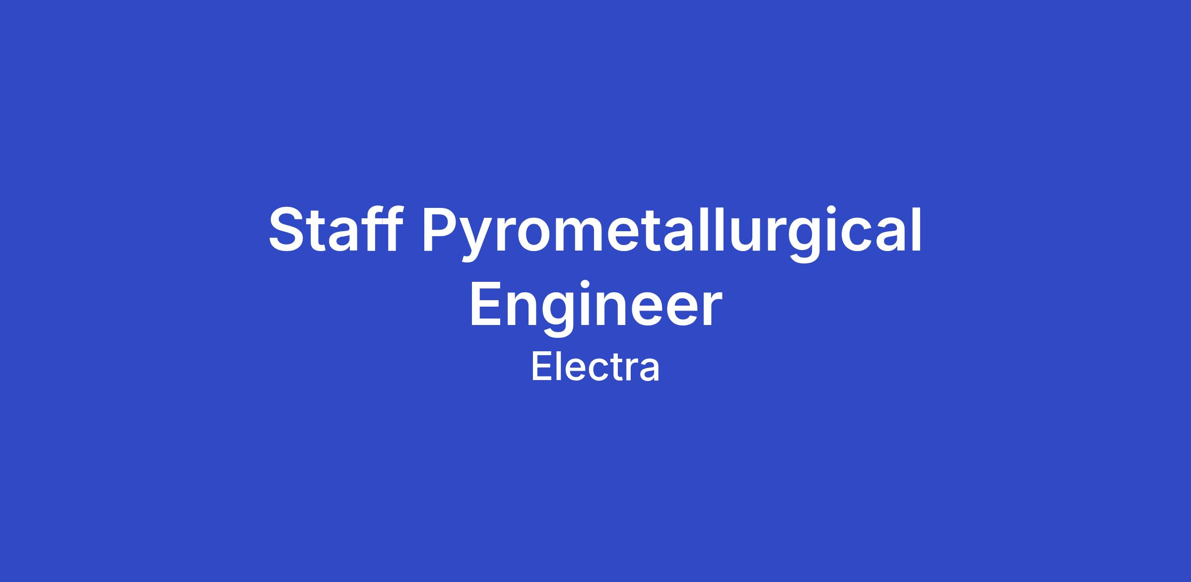 As a Staff Pyrometallurgical Engineer, you will focus on developing and scaling up pyrometallurgical processing steps for Electra’s clean iron process from the laboratory to our pilot, demonstration, and commercial plants.