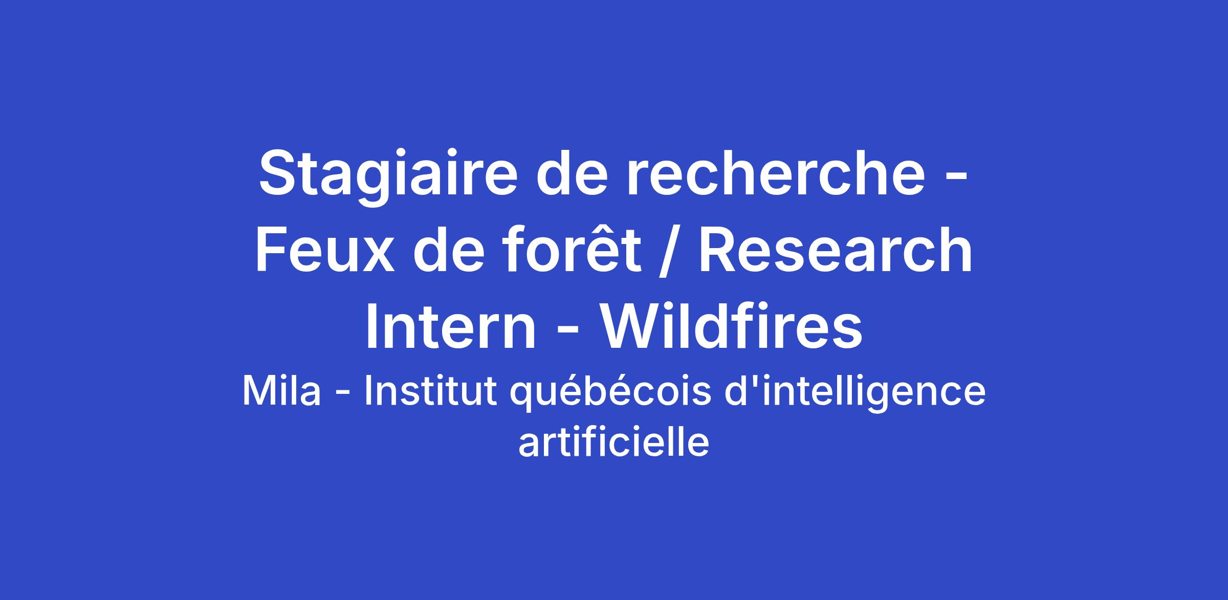 Mila recrute pour un poste de stagiaire en recherche au sein de l'équipe de recherche appliquée. Nous recherchons une personne pour contribuer à un projet de recherche appliquée pour un partenaire important de Mila.