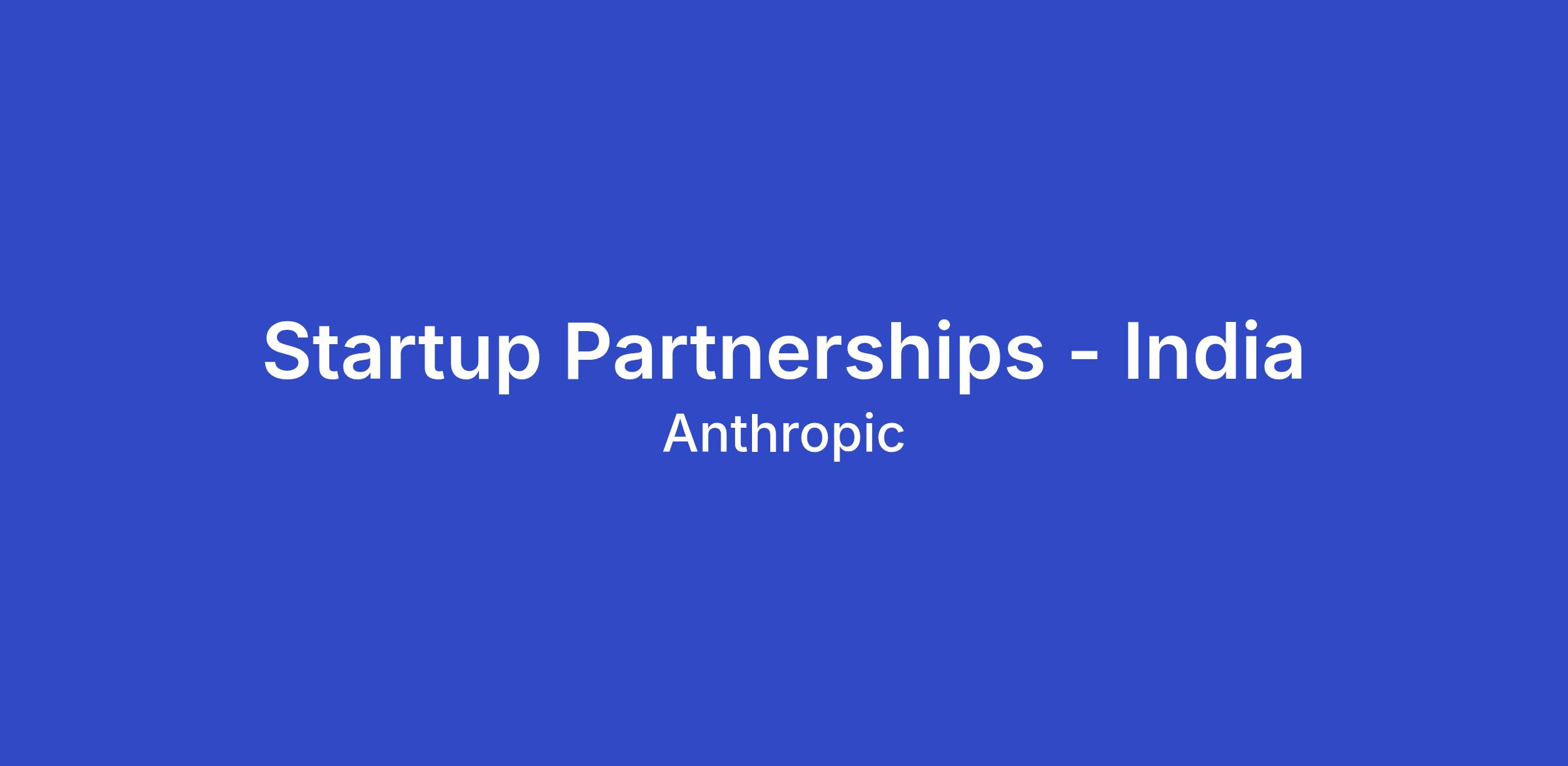 We are looking for a builder-minded Startup Partnerships lead to drive the adoption of Claude within India's dynamic and rapidly scaling startup ecosystem. This is a 0-to-1 opportunity — you'll be designing and executing innovative programs that enable startups to access and build with Claude across India's major tech hubs, from Bengaluru and Mumbai to Delhi-NCR, Hyderabad, and Pune.