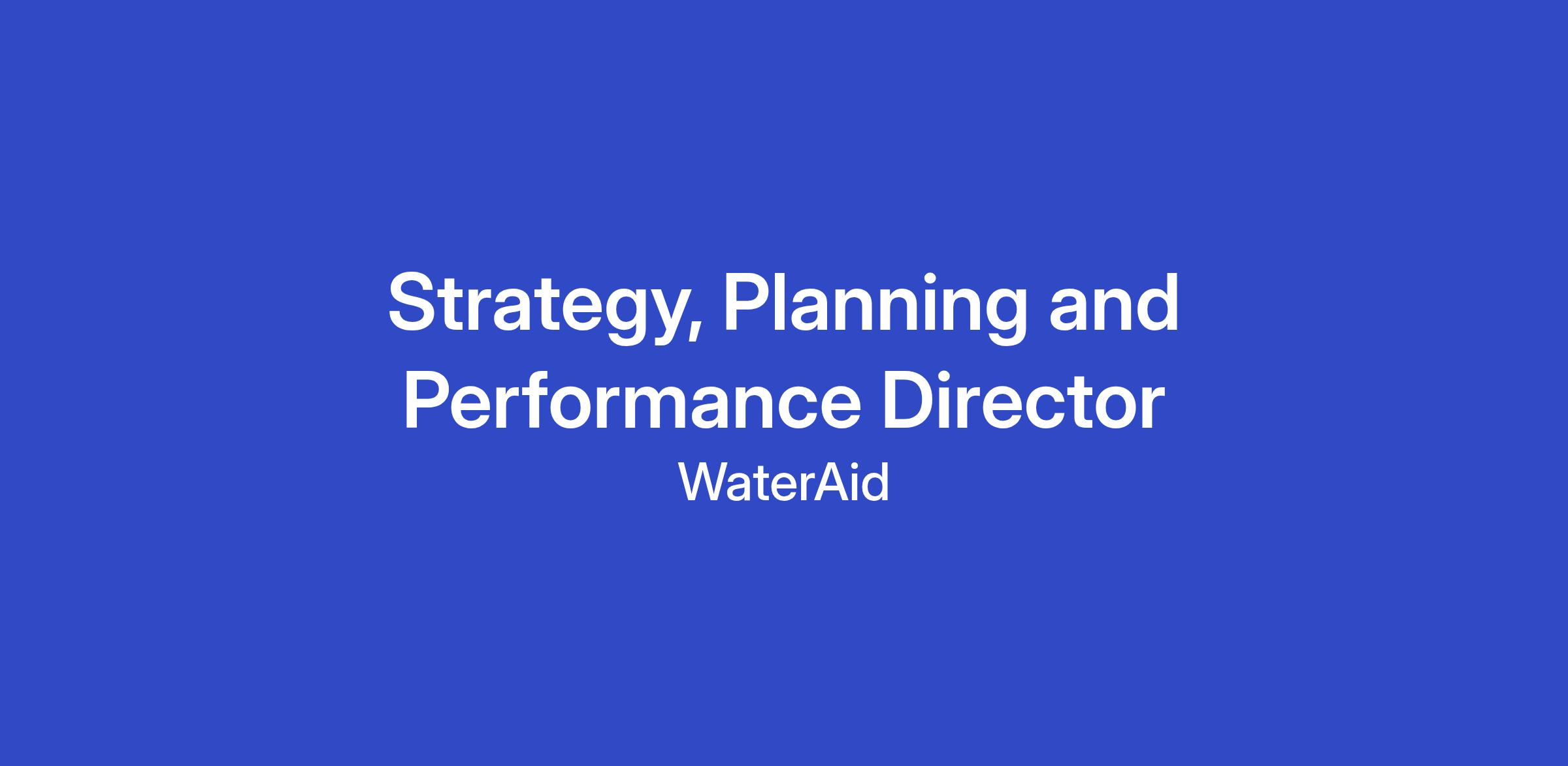 The Strategy, Planning and Performance Director works across WAUK and WaterAid International to deliver performance and planning. They are responsible for delivering planning and performance assessment across both WAUK and international - ensuring that these are aligned and link up in the most efficient manner possible. They will ensure that we understand how we are contributing towards our global strategy and we are maximising our global impact.