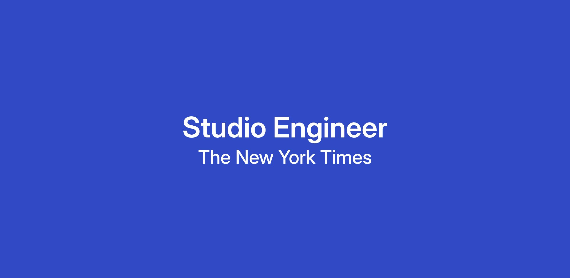 The New York Times audio team is seeking a Studio Engineer to work across current and future shows and products in the Audio and Podcast Video portfolio. The Studio Engineer will help manage our state-of-the-art production studios, provide tech support for hosts, show producers and editors, in addition to New York Times reporters and contributors, and help integrate video workflows into established audio production spaces.