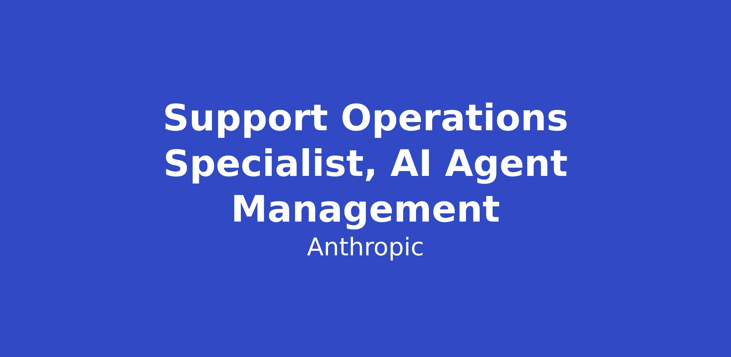 The Support Operations team at Anthropic is dedicated to optimizing and scaling the Product Support function to deliver exceptional user experiences. As a Support Operations Specialist focusing on AI Agent Management, you will sit within our AI Support function and be instrumental in building and improving the capabilities of Fin, our AI support agent.
