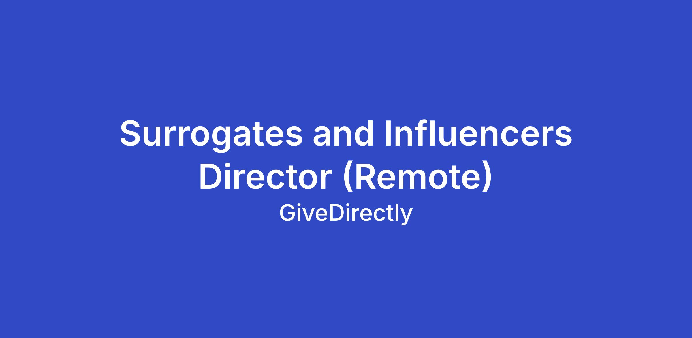 GiveDirectly is seeking a strategic, well-connected Surrogates and Influencers Director to lead and scale our external earned and sponsored partnerships. This role owns the strategy, relationship management, and execution of these campaigns.
