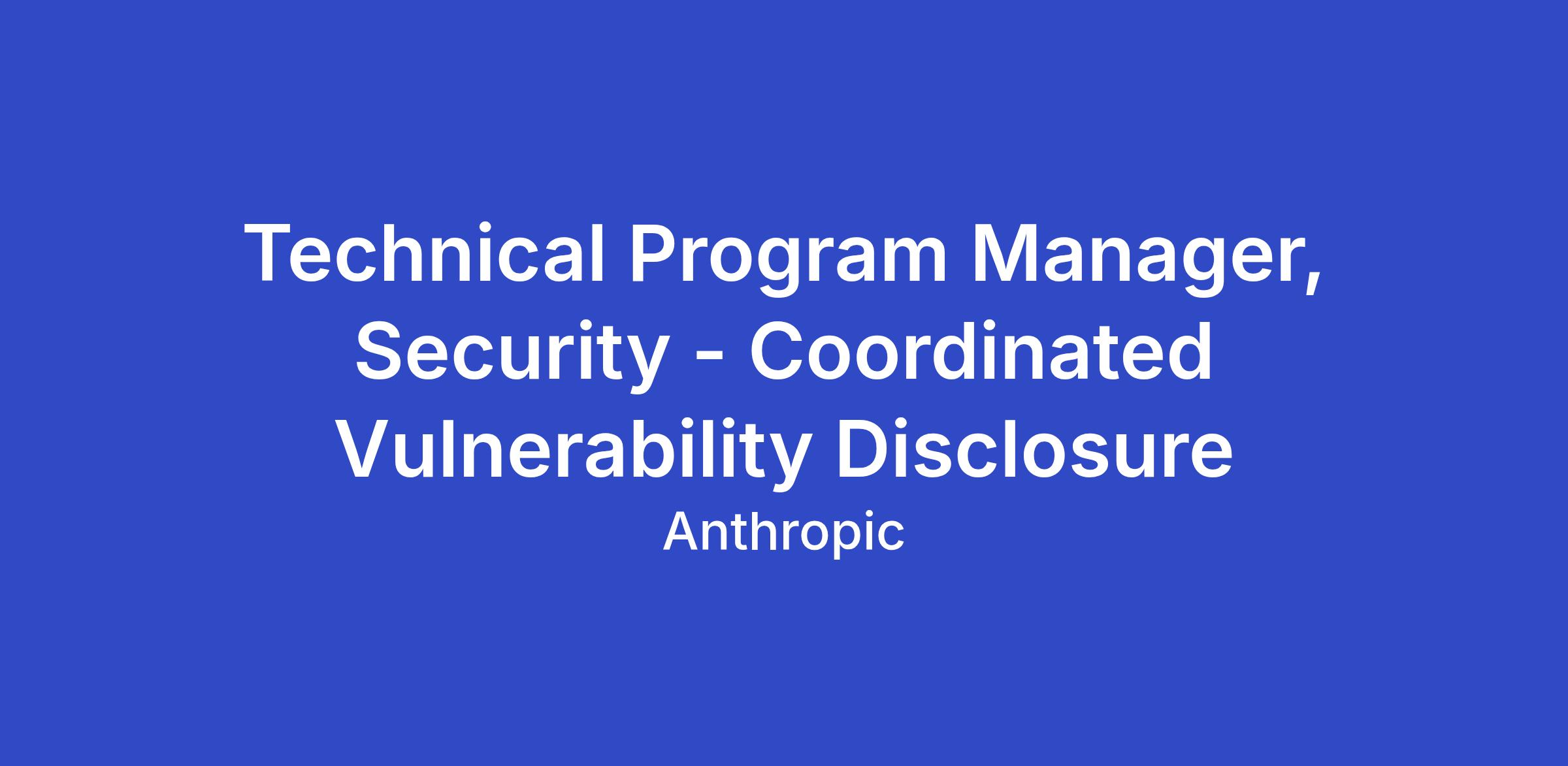 As a Technical Program Manager for Security, Coordinated Vulnerability Disclosure (CVD), you will build and lead the programs that govern how Anthropic responsibly discloses software vulnerabilities discovered by our AI-powered tools, including Claude, Patchy, and Claude Code. These tools have already found real zero-days in Firefox, the Linux kernel, and other critical software. The challenge is no longer just finding vulnerabilities; it is managing the consequences of finding them at unprecedented scale and speed.