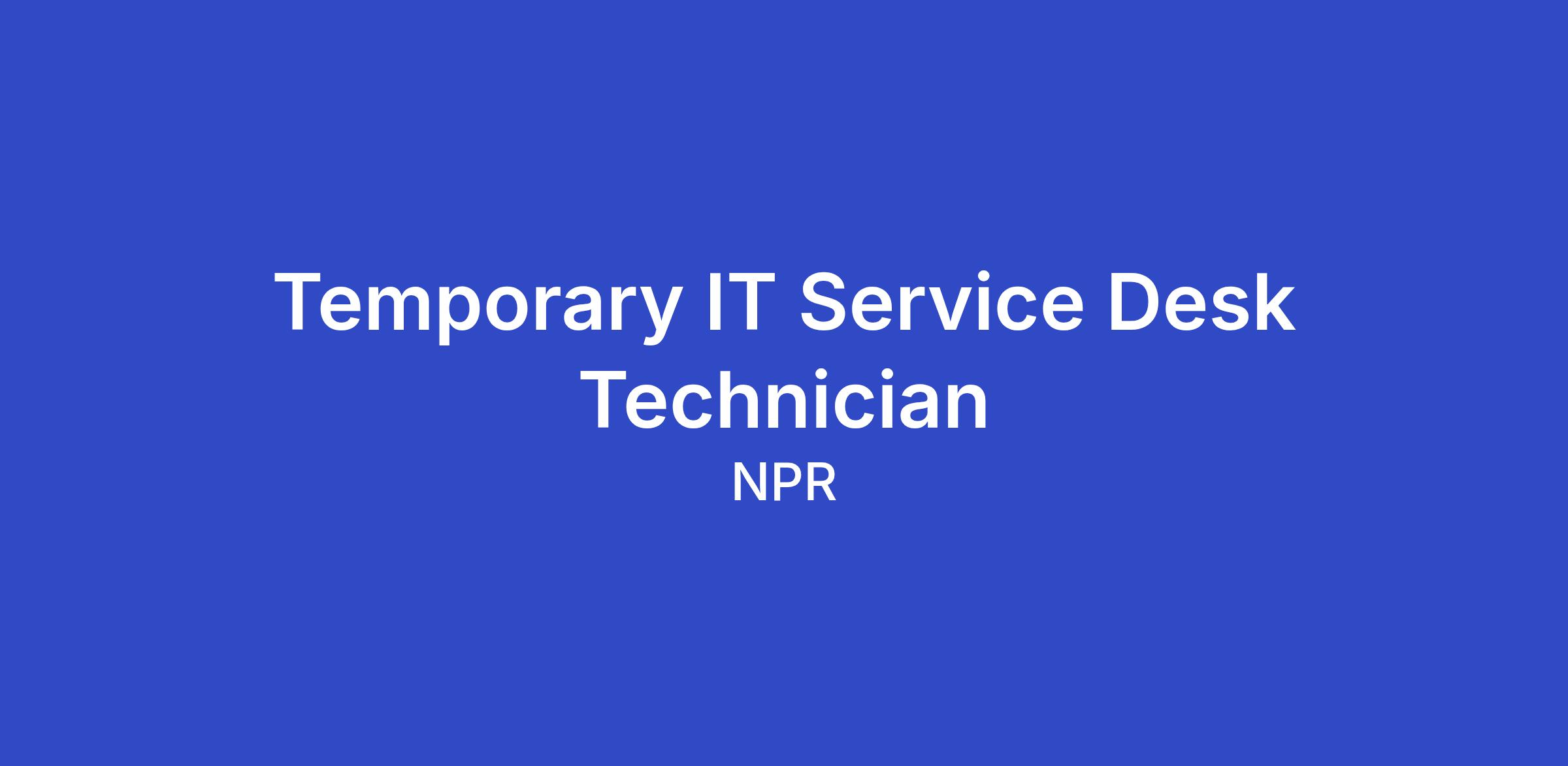 In this role you will be the first point of contact to support staff and the technology they use at NPR, from business applications to network connectivity, broadcast and podcast production. You will provide staff with training and troubleshooting assistance at the application and hardware level. This role works closely with other technology teams to support our tools and services so that technology issues are addressed quickly.